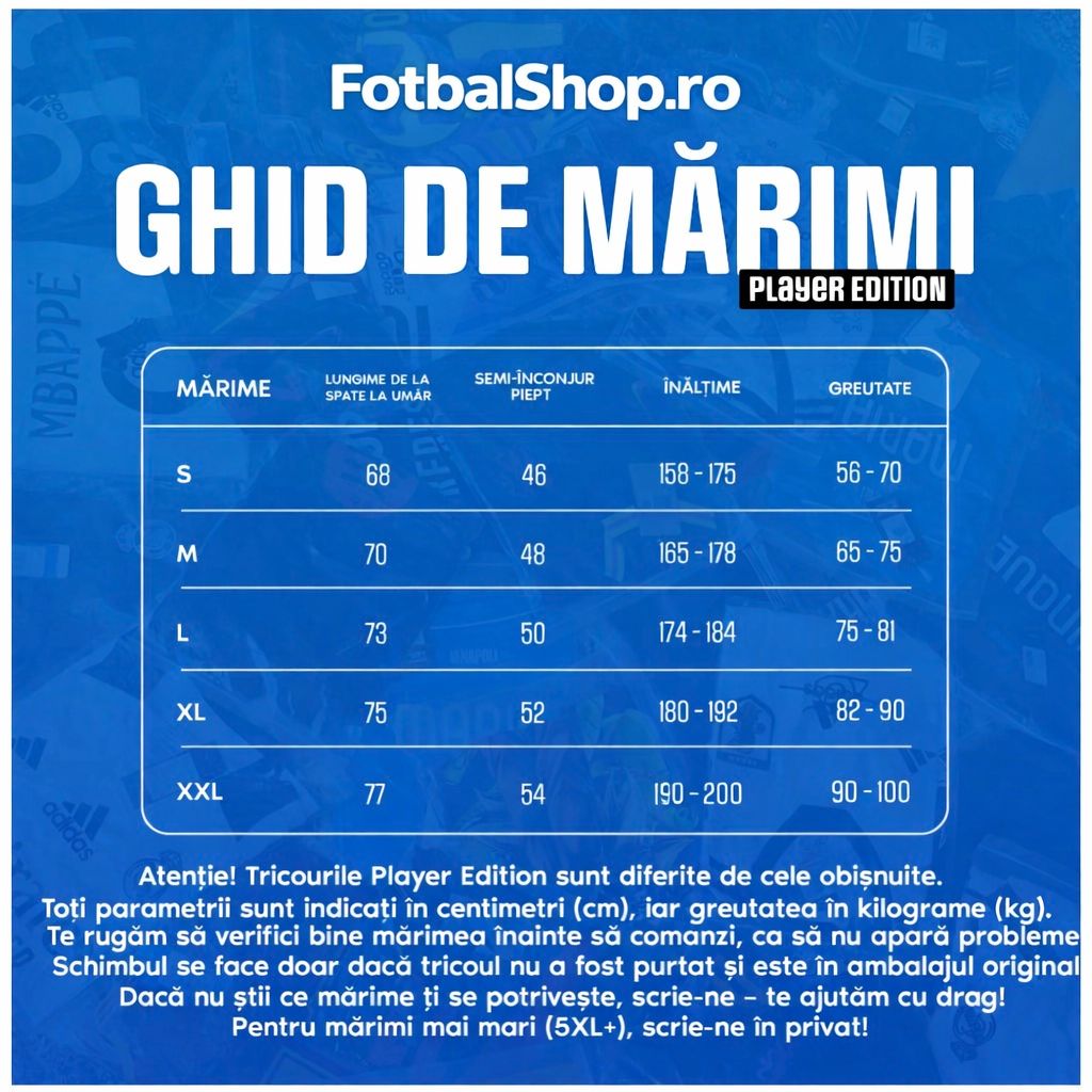 Bun venit la Fotbal Shop, destinația fanilor de fotbal! De șase ani cucerim cu mândrie piața cu colecția noastră stilată, îmbinată cu eleganță și un strop de originalitate. Cu o dragoste profundă pentru acest sport, îți aducem cele mai uimitoare tricouri de fotbal.